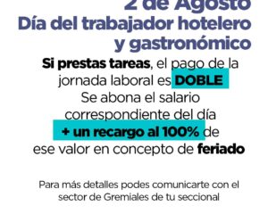 Leer más2 De Agosto Si prestas tareas, el pago de la jornada laboral es DOBLE. Se abona el salario correspondiente del día + Un Recargo al