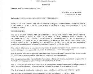 Leer másConvenio válido para hoteles, restaurantes, confiterías, rotiserías, heladerías, pizzerías, confiterías bailables, etc. Detalle de Convenio Convenio Colectivo de Trabajo celebrado entre la UNION DE TRABAJADORES