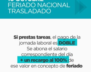 10 DE OCTUBRE Si prestas tareas, el pago de la jornada laboral es DOBLE. Se abona el salario correspondiente del día + Un Recargo al
