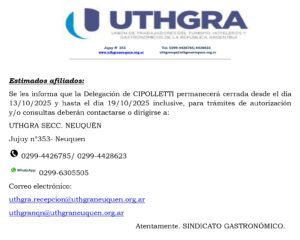 Leer másNUEVO ACUERDO PARITARIO JULIO–OCTUBRE 2025! UTHGRA informa a todos sus afiliados y afiliadas: En el marco de la paritaria 2025/2026, se acordó con FADAPH un