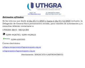 ¡NUEVO ACUERDO PARITARIO NOVIEMBRE 2025 – MAYO 2026! UTHGRA informa a todos sus afiliados y afiliadas: En el marco de la paritaria 2025/2026, se acordó
