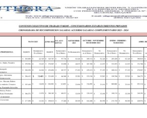 Acuerdo Salarial UTHGRA -CACYR CAECSAL 401/05 Acuerdo Complementario 2023 Se acordó el Pago de una Suma No Remunerativa No al Básico del 16% como Complemento