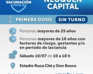 Compañeros, informamos que los mayores de 35 años que residan en Neuquén Capital, pueden vacunarse hoy en el Rucache a partir de las 14.00 hs,
