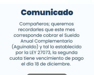 Comunicado: Fecha de Cobro del Aguinaldo