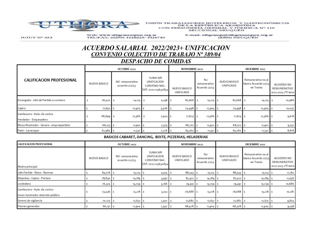 Nuevas Escalas Salariales 28 noviembre, 2022 vo000402 Sin categoría, Últimas Publicaciones Escalas salariales acuerdo 2022-2023+ Unificación correspondiente al convenio 389/04.