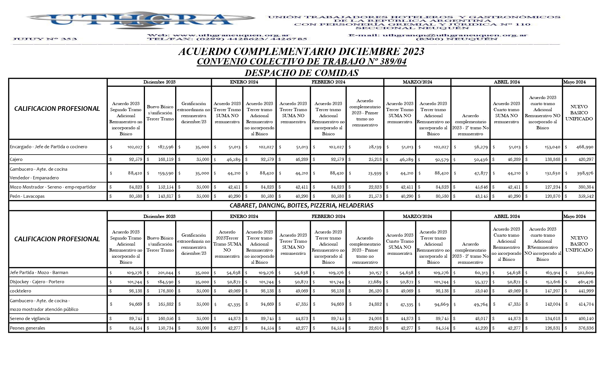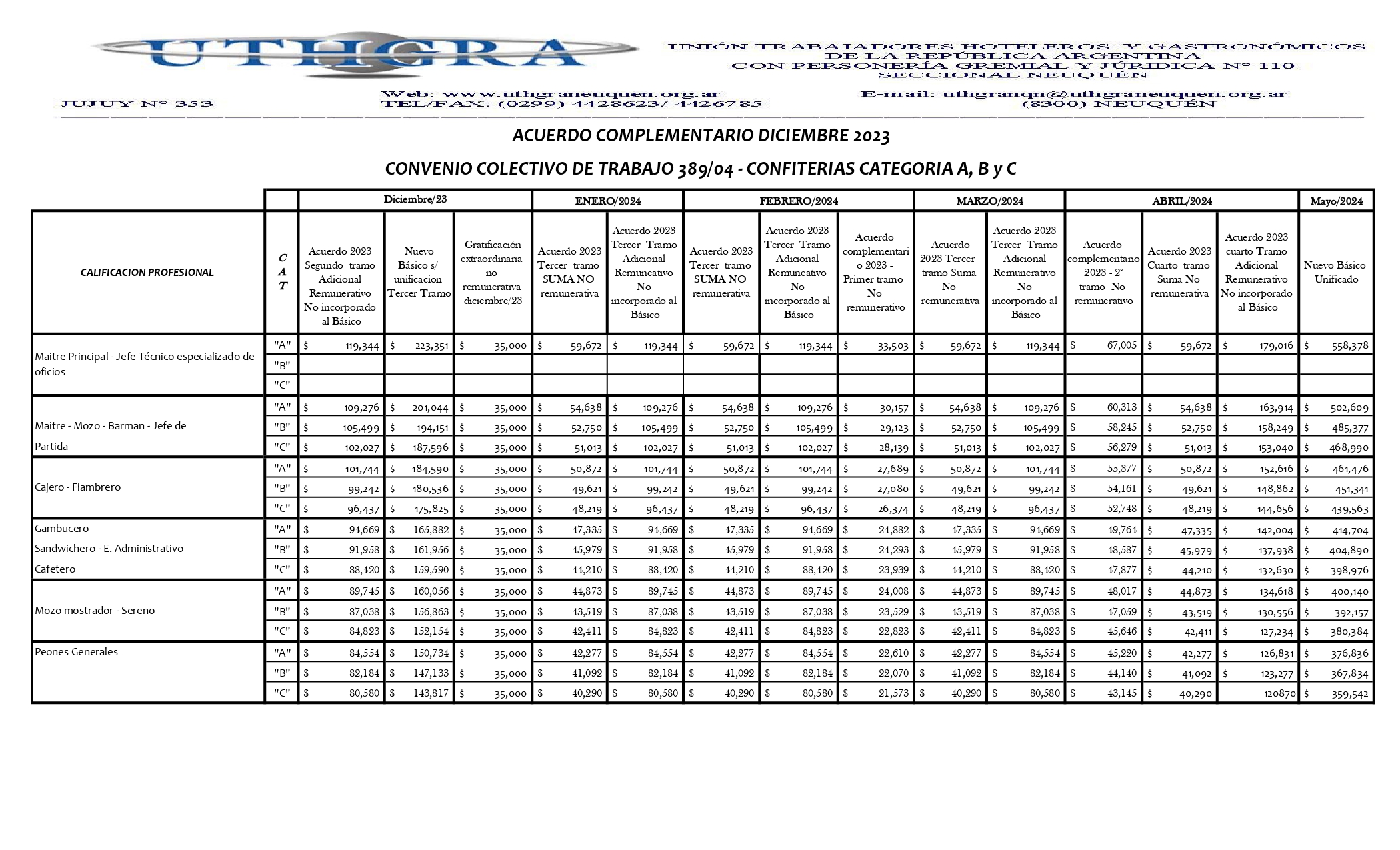 ESCALAS ACUERDO SALARIAL UTHGRA-FEHGRA 389/04- Acuerdo Complementario 2023 7 diciembre, 2023 vo000402 Afiliados, Últimas Publicaciones