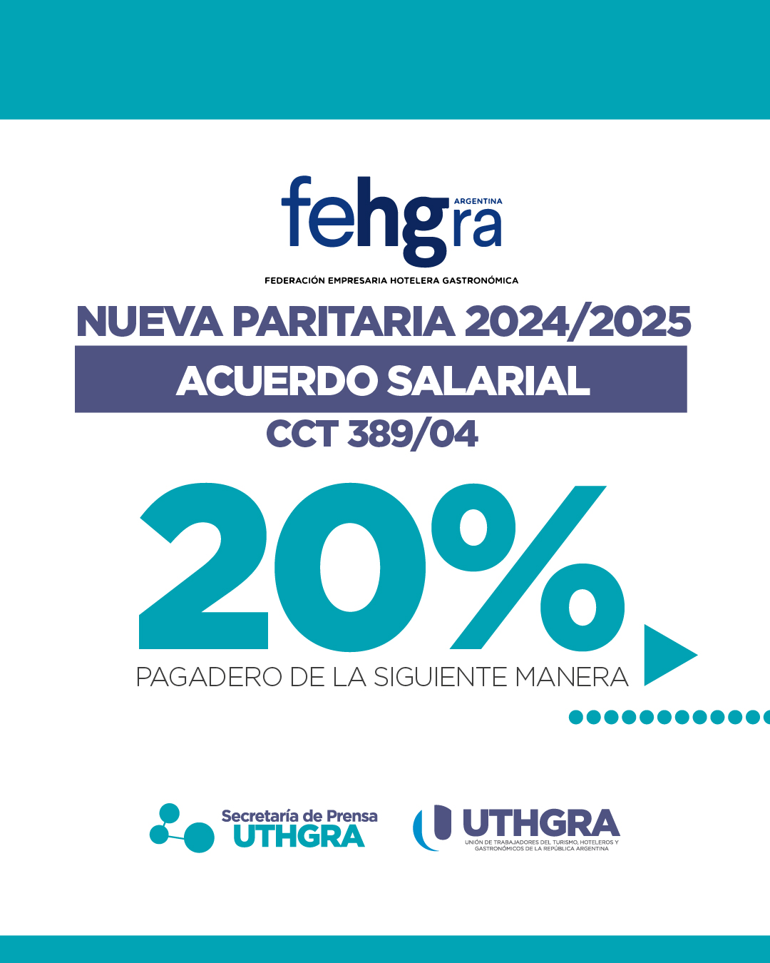 –Se logró un Acuerdo Salarial con un incremento del 20% pagaderos de la siguiente manera: