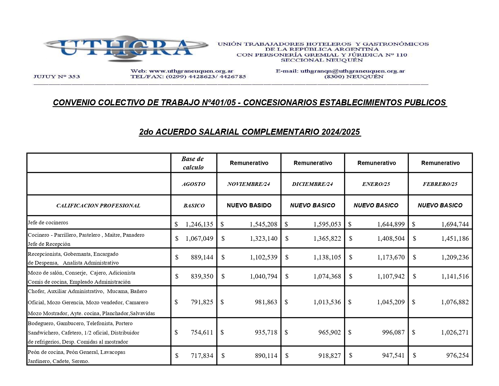 Acuerdo Salarial UTHGRA-CACYR-CAECSAL 401/05: 2° Acuerdo -escala 28 noviembre, 2024 vo000402 Afiliados, Últimas Publicaciones
