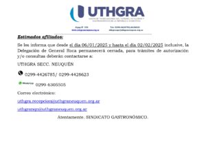 Comunicado: Se informa por la Delegación de General Roca. 26 diciembre, 2024 vo000402 Afiliados, Últimas Publicaciones