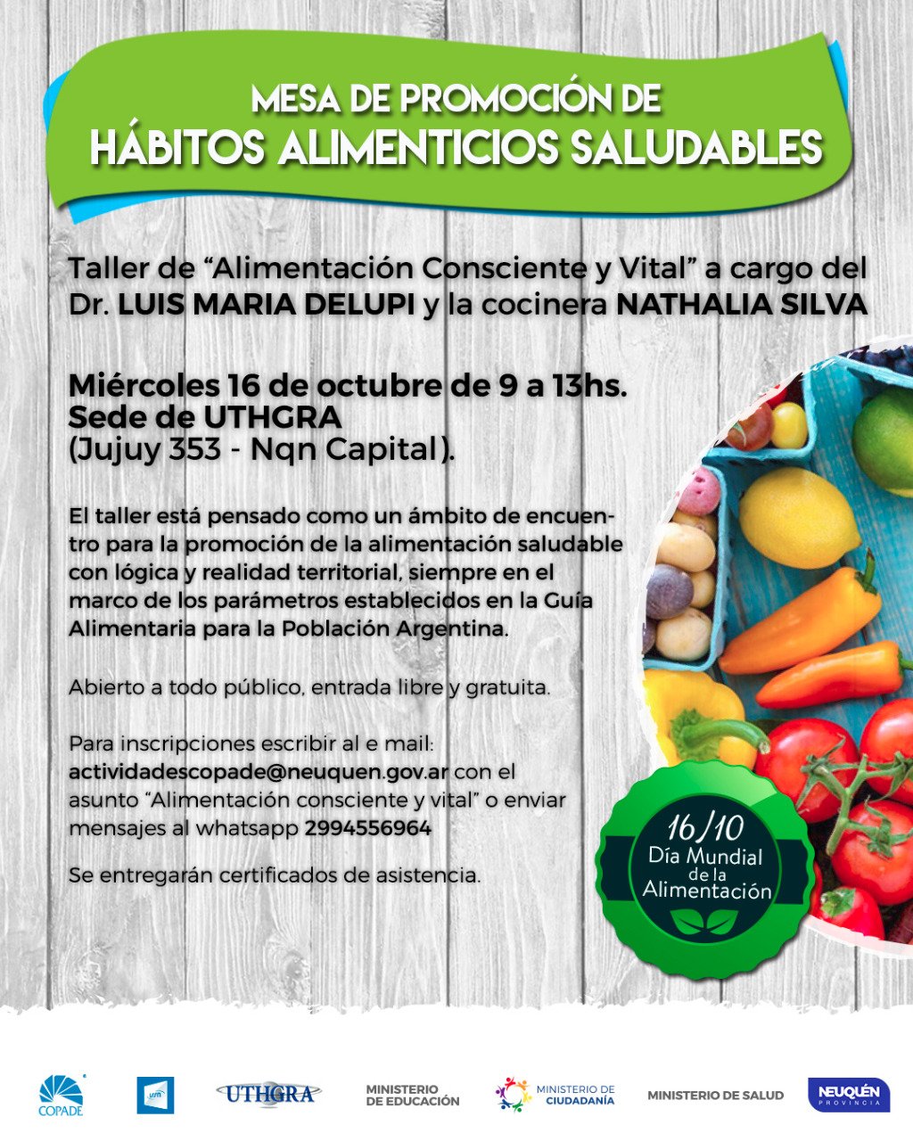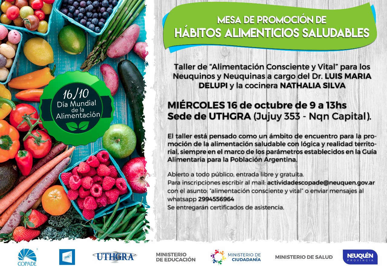 Miércoles 16 de Octubre de 9:00 a 13:00 hs en la Sede de UTHGRA- Jujuy 353 de Neuquén-.