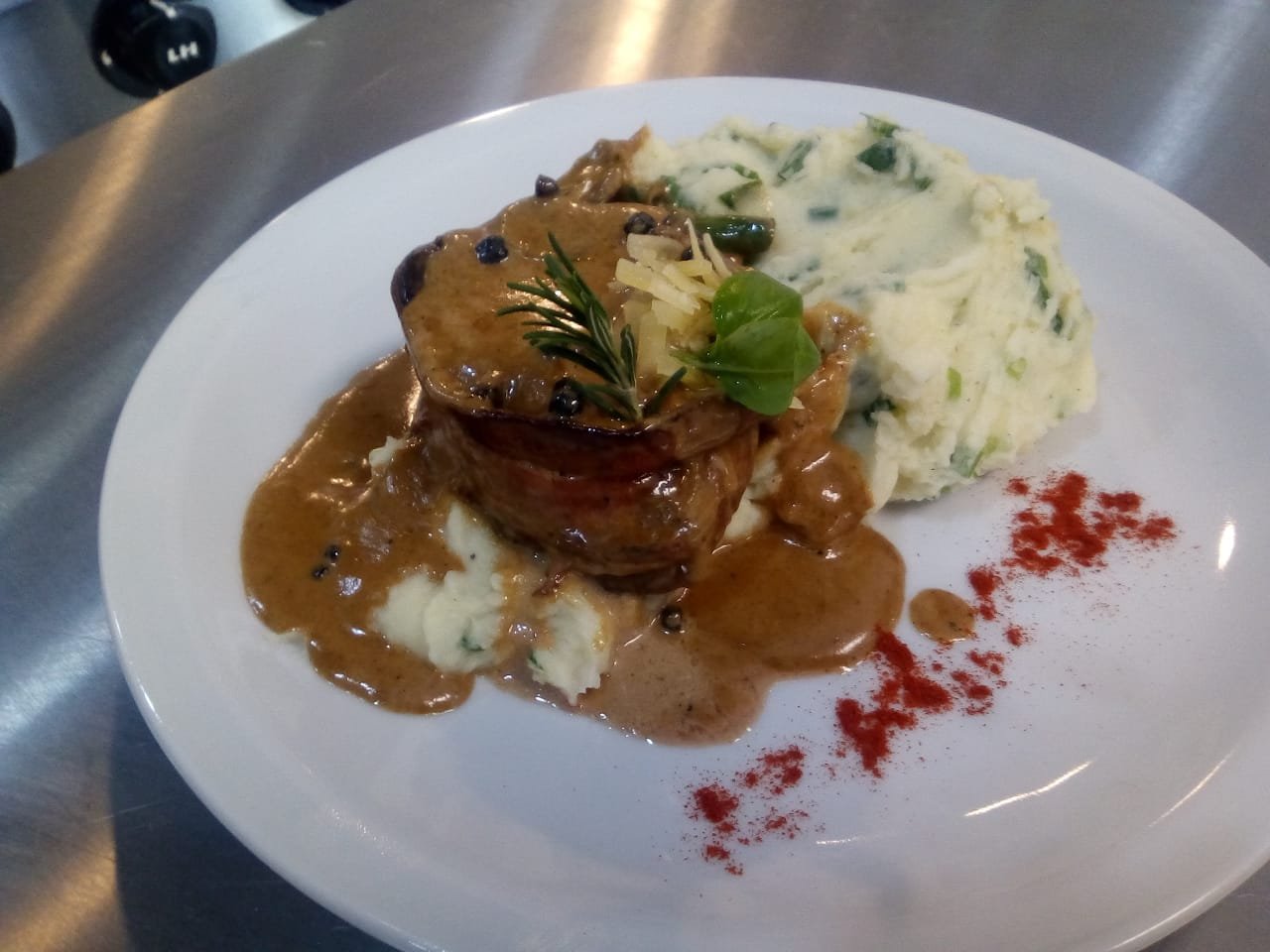 Curso de Cocina: Elaboración de Medallones de Lomo a la Pimienta con Puré de Papas Especiado.