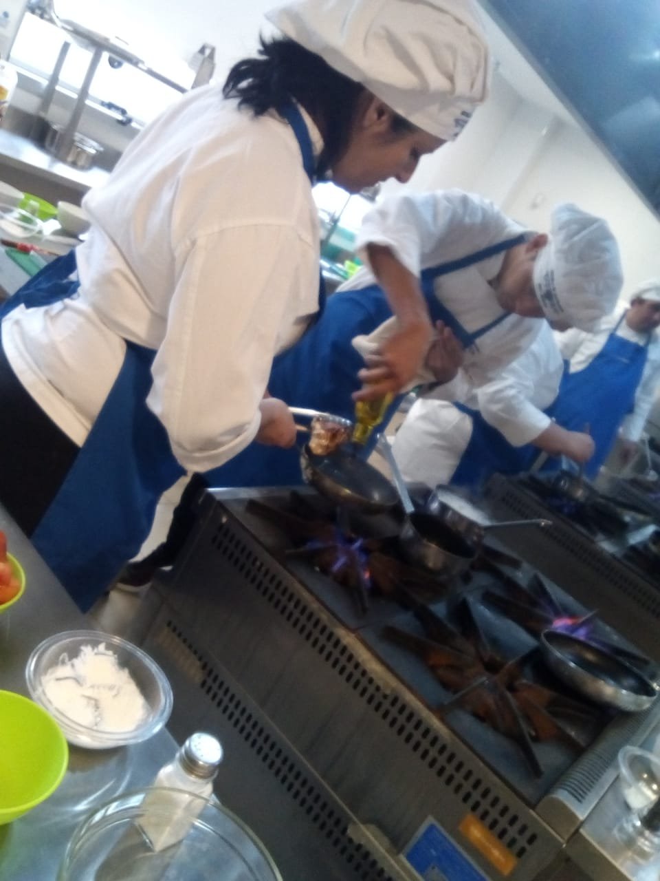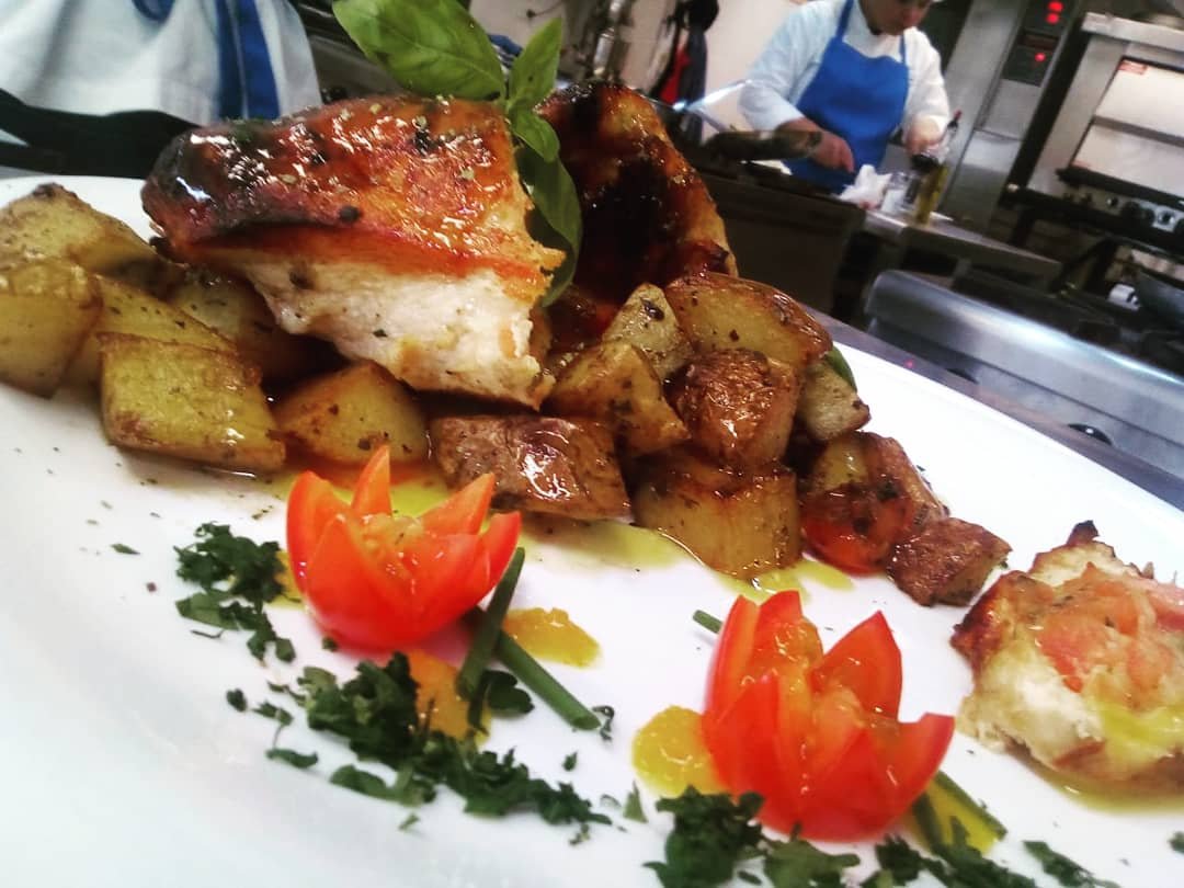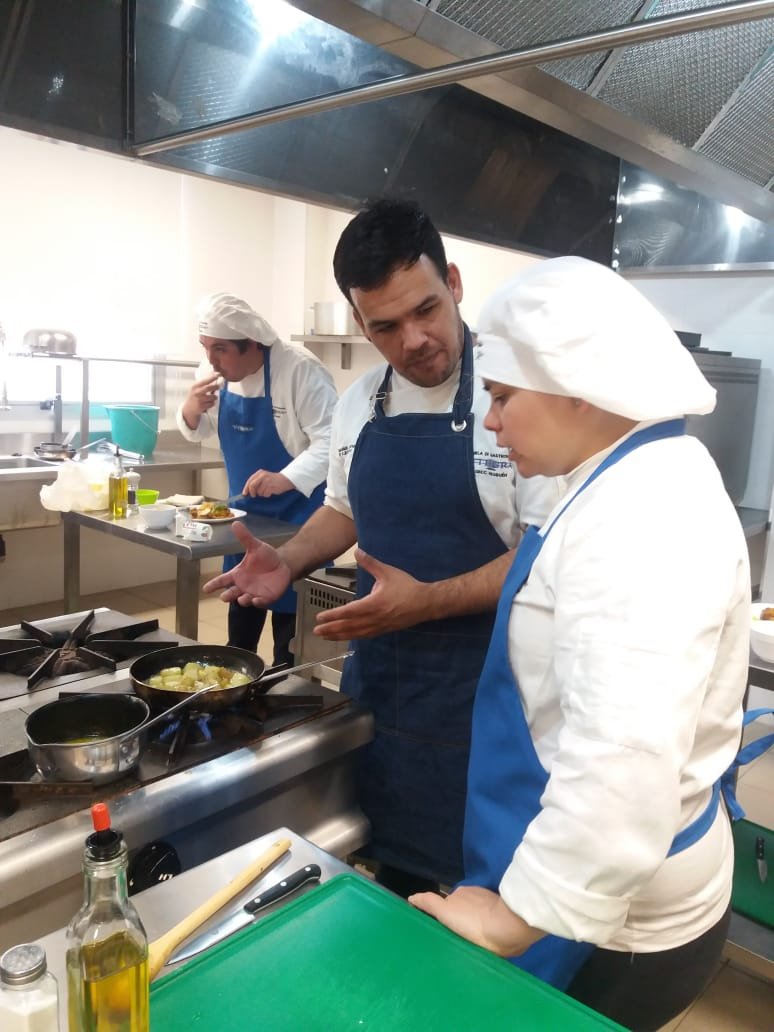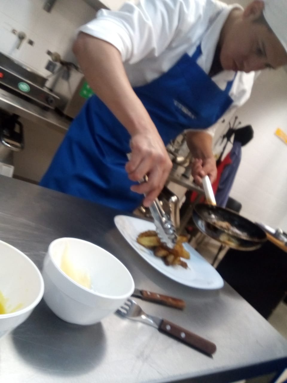 Curso de Capacitación de Cocina: Preparación de Pechuga de Pollo rellena con muzzarella, tomate y albahaca, con salsa de Naranja y Papas a las finas hierbas.