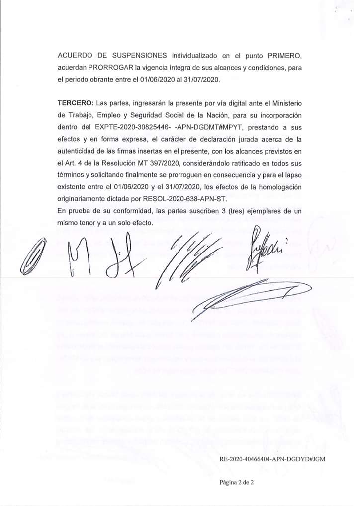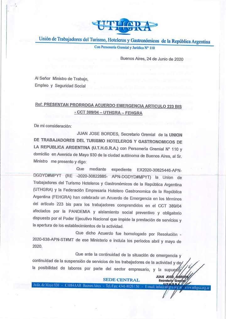 Prórroga Acuerdo de Emergencia Convenio 389/04. 25 junio, 2020 vo000402 Afiliados, Artículos de Interés, Últimas Publicaciones Prórroga Acuerdo de Emergencia Articulo 223 Bis Convenio Colectivo de Trabajo 389/04 para los meses de Junio y Julio/20.